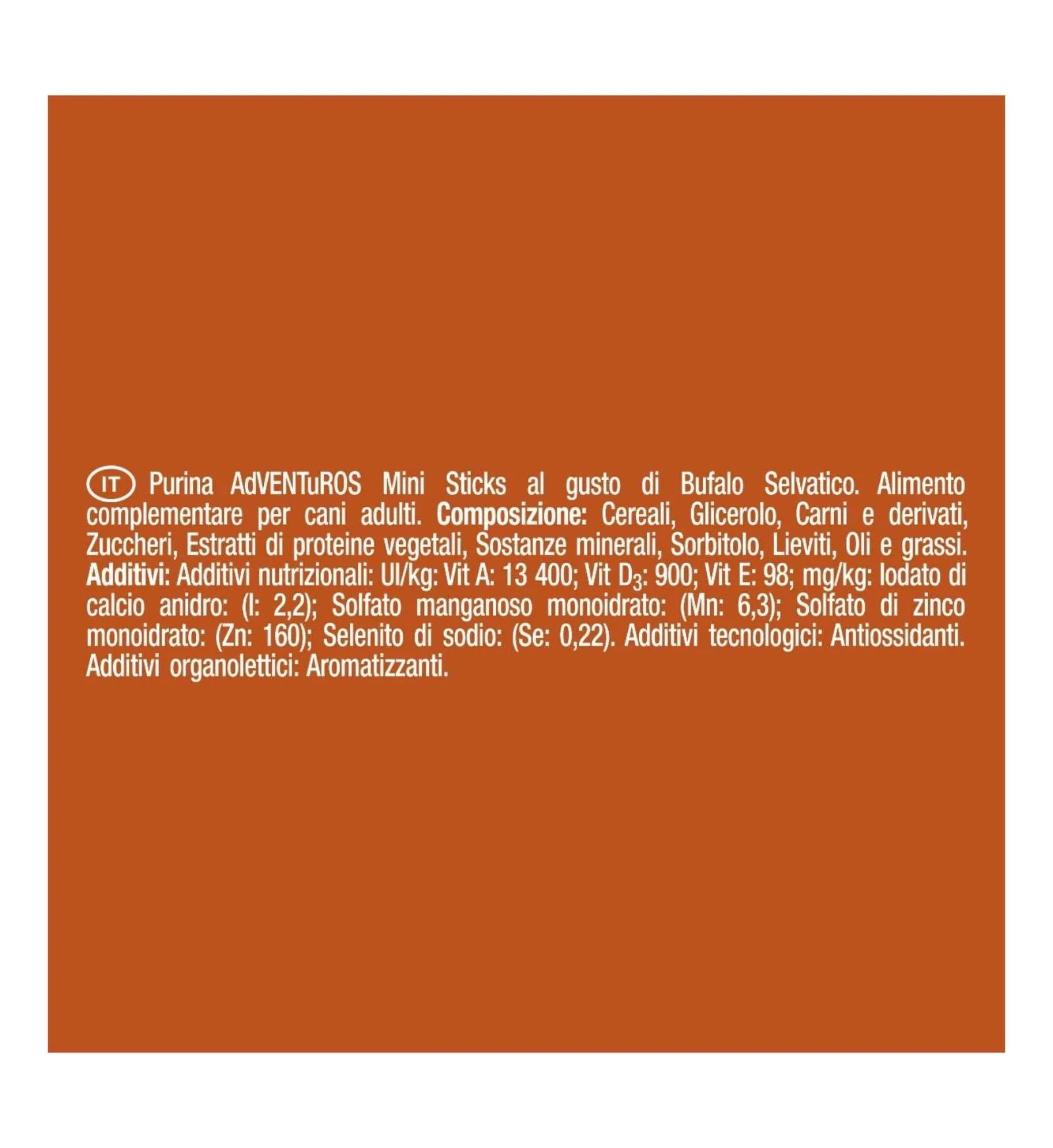 Ruvidi fuori, soffici all’interno, appetitosi snack al gusto di bufalo selvatico, sono tutto quello che il tuo cane ama dell’avventura e dei momenti vissuti all’aria aperta. Li abbiamo pensati specificatamente per la bocca del tuo cane di piccola taglia. Risveglia lo spirito curioso del tuo cane con Purina AdVENTuROS Mini Sticks e scopri il gusto dell’avventura. Purina AdVENTuROS Mini Sticks al gusto di Bufalo Selvatico. Perchè i cani di piccola taglia pensano in grande.